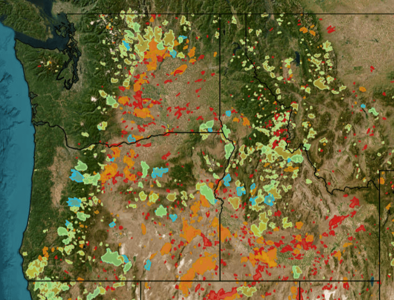 The Pacific Northwest has in recent years become ravaged by frequent wildfires. Below is a burn scar map of fires just since 2010. It is now becoming harder to find a healthy unburned forest. This region is nearly void of flash flooding due to the thick vegetation that efficiently absorbs the frequent precipitation. However, when a wildfire burns through this vegetation it leaves the steep slopes of the Cascades or northern Rockies vulnerable. There is no longer vegetation to absorb that moisture, when heavy rain does occur it now washes down the slopes becoming a torrent of debris and mud that is destructive and deadly to those in the path.